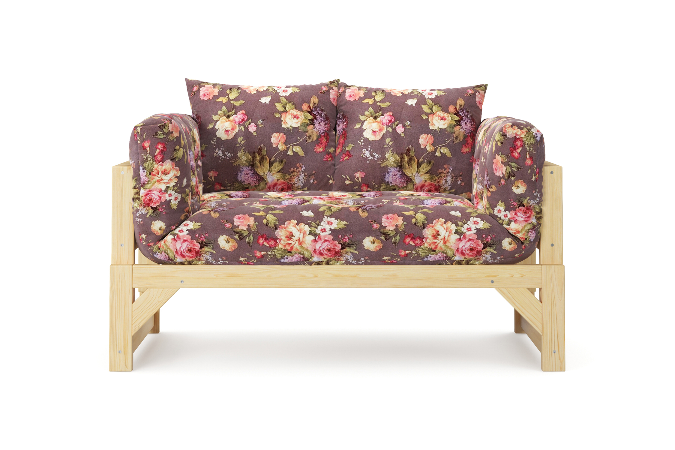 Максимальная нагрузка — 220 кг. Ширина деревянной спинки 130 см. Приспинные подушки, представленные на фото, входят в комплект. Декоративные приобретаются отдельно. Диван продается без лакокрасочного покрытия, под самостоятельную покраску. Высота сиденья без матраса - 31 см, с матрасом 46 см.