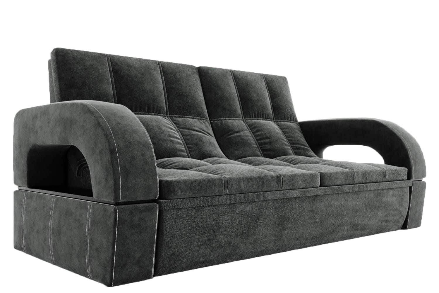 Особенности дивана: Каркас: ЛДСП, фанера, брус. Эргономичная мебель, позволяющая создать стильный интерьер. Обит качественным и плотным текстилем. Опорные элементы каркаса помогают равномерно распределять вес, благодаря чему напольное покрытие не продавливается. Механизм трансформации позволяет быстро и без особых напряжений превратить диван в удобное спальное место.